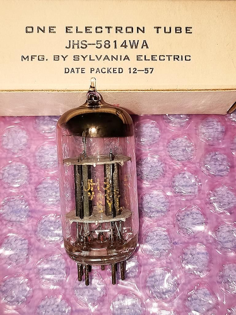 JHS-5814WA (12au7WA) Sylvania, military 57 год, 3 mica, D геттер, черный анод, NOS, в оригинальной коробке – 15000 руб.