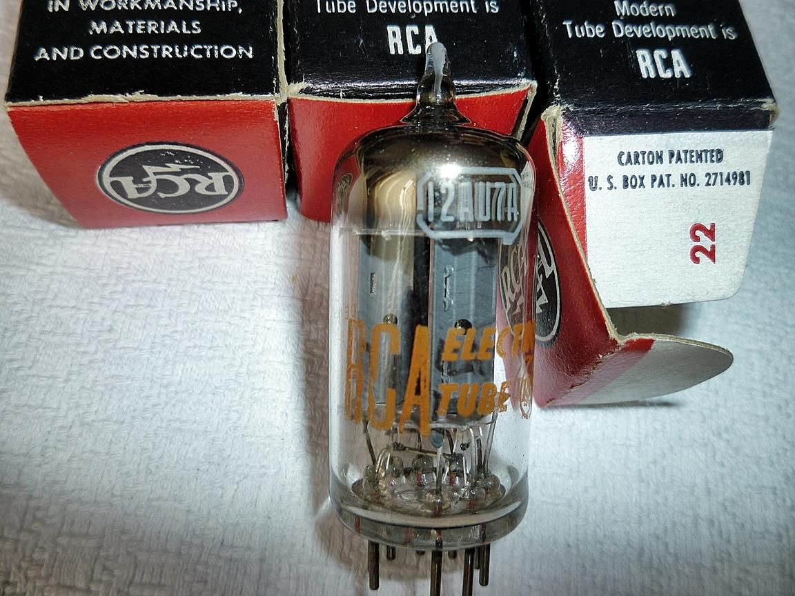12au7А RCA красный принт, 17mm серые аноды, D геттер, отобраны для амии США, 60-е годы, NOS, в оригинальных коробках, эмиссия 100% - 12000 руб./шт., 24000 руб. подобранная пара