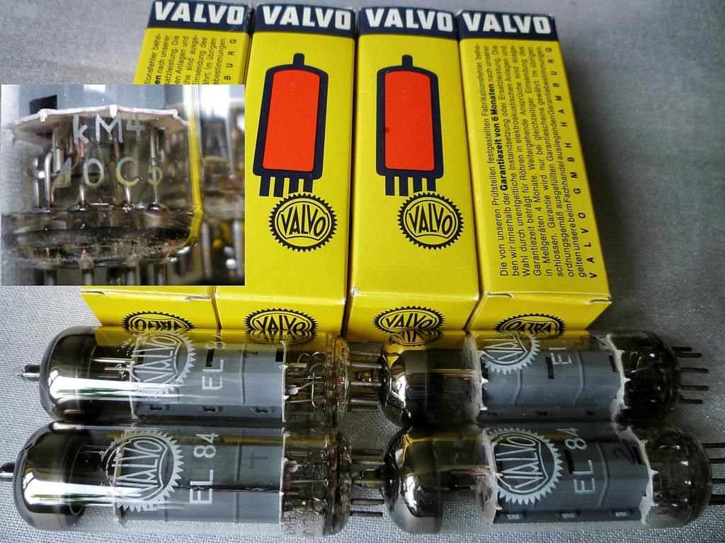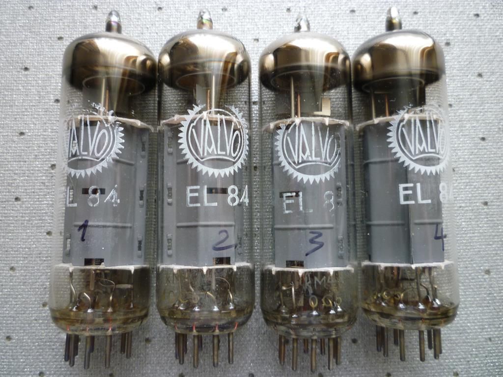 EL84 VALVO (крупный логотип), лучшие, Mullard отдыхают, подобранный квартет завода Philips, Heerlen, Holland, код одной партии-KM4 delta0c5 - 1960 год, эмиссия 100%, в оригинальных коробках - 65000 руб.