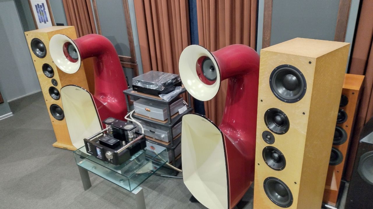 На фото - этот самый усилитель и эти самые рупора. Понятно, что большинство, наверное, уже имеет представление о звуке OPERLY - таки на выставках более менее все бывают, - но тут звезды сошлись: и Рупоры, усилитель, и комната. Значительно лушче условия прослушивания.