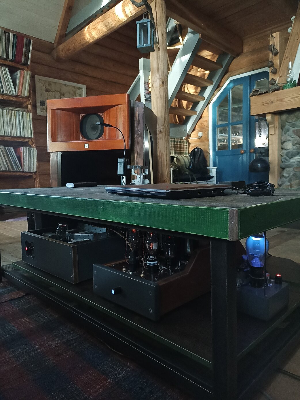 Краткая предыстория.... Прошло довольно много лет с того момента как Юра Лиховол открыл тему обсуждений по моей аудиосистеме (сейчас она закрыта за давностью лет). После этого система довольно сильно эволюционировала и году так в 2016-17м была полностью продана, в связи с изменением жизненных обстоятельств и переездом в другой город. После продажи я года три практически ничего не слушал, кроме мырлыканья "яндекс-музыка" и прочих "спотифаев" в авто и аудиокнижек в долгих поездках. Но время идёт, а старая любовь живёт вечно! Детали всякоразные на полочках пылились и я решил собрать ламповичок для своих Градо Референс. В общем-то ничего глобального не задумывалось и потому за пару выходных на коленках собрался двухкаскадный отнотактничек на 6V6 в триоде для прослушивания музыки с ноута через наушники во время работы. К тому же неким образом в хозяйстве нашлась пара Altec 14, которые я никогда всерьёз не рассматривал, но на безрыбье и рак - рыба! В общем подключил я эти Altec к усилителю как-то раз и неплохо так это всё заиграло, несмотря на карликовую выходную мощность аппарата. Естественно, усилитель собирался по идеологии отъявленного минимализма, то бишь не имел даже анодного трансформатора питания, как впрочем и все мои приборы прошлой системы. Послушал я, послушал пару вечером и решил добить этот набор недоразумений до вменяемого удобоваримого варианта аудиосетапа. По усилению ничего глобально альтернативного я не предполагал, а вот АС решил перелопатить, зная весь тот позор, помещённый в ящики из ДСП. Динамики менять смысла не было в пределах заданной концепции, а вот фильтр я полностью пересчитал в последовательный и собрал заново с учётом своего понимания "правильности" (неполярные конденсаторы, воздушные индуктивности на ВЧ, индуктивности-нулевики на НЧ, навесной монтаж, нормальная проводка внутри и т.д.) Как итог, звучание успокоилось и стало более взрослым, "правильным". Стало возможным слушать классику! Параллельно занимался изготовлением ДАКа на базе платы SW1X DAC3 (1541а) с ламповым DEM-клоком, питаемым кенотроном, пассивным преобразованием на медном проволочном резисторе 5 Ом и двухкаскадном аналоговом окончании с трансформаторным выходом на аморфе. Питание, естественно, бестрансформаторное, смещение всех каскадов фиксированное. Питание цифровой части от раздельных по напряжения трансформаторов с селеновым выпрямлением 5В шин и кенотронным для 15В. Сигнал на него подавался по I2S c внешнего USB конвертора, также имеющего ламповый клок с кенотронным питанием. Низковольтная цифра также питается через кенотрон. С цифровым источником дальше заморачиваться не стал, вполне хватало для требуемых задач. А далее судьба сделала мне подарок! После долгих скитаний по рукам пары моих товарищей, ко мне смогли вернуться АС из предыдущей системы - рупорные Vectorhorh FH, в которые были установлены ждущие своей очереди ШП Sonido 096 на альнико, любезно подаренные мне ранее Иштваном, и спроектированные по индивидуальному заказу для использования в рупорном оформлении. В серии таких динамиков нет. АС с помощью товарища мы перевезли в дом в деревню, где я проживаю. Пришлось их немного подреставрировать косметически и "жизнь заиграла новыми красками!" Так прошло примерно два года, пока я не договорился с Иштваном об изготовлении для этих ШП новых высоковольтных 