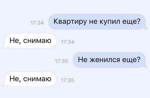 Кажется, это уже где-то когда-то было: В 14 я мечтал, что у меня будет девушка. В 16 она у меня появилась, но между нами не было страсти. Тогда я решил жениться на страстной. В универе я встречался со страстной, но она была чересчур эмоциональной: каждый пустяк превращался в страшную драму и грозил ей самоубийством. И я решил жениться на стабильной. По окончании универа в встретил такую, но она оказалась ужасно скучной, абсолютно предсказуемой и никогда не теряла голову. Жизнь с ней превратилась в рутину, и я решил жениться на девушке с изюминкой. Девушка с изюминкой оказалась слишком шебутной, постоянно кидалась в крайности. Она была суперэнергичной, но без целей в жизни. И я решил женится на той, у которой в жизни есть настоящие амбиции. И я нашел умную, амбициозную и женился на ней. Но она оказалась настолько умной и амбициозной, что развелась со мной через год, отсудив все, что я имел. Теперь я стал мудрым и ищу себе женщину с большими сиськами. (с)4 points
