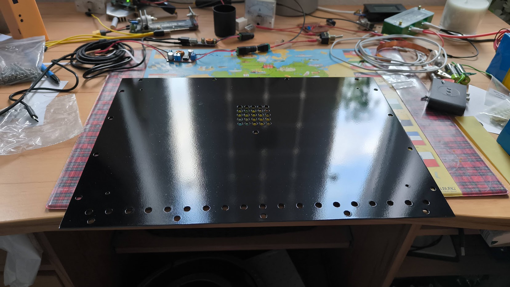 Покрашено Естественно, я был бы не я, если б сделал всё без факапов. Но нет же. Умудрился перепутать баллончики с краской и покрасил нижнюю крышку глянцевой Но в целом она и глянцевая неплохо смотрится, да и потом, снизу всё равно не видно будет Главное, захожу в гараж через час после того как покрасил. Смотрю, блестит. Думаю как такое возможно, чтоб за час не высохло. Эта краска схватывается буквально за несколько минут. Потом смотрю, там где стоял баллончик с глянцевой краской, стоит с матовой. Ну и тут пазл сошёлся3 points