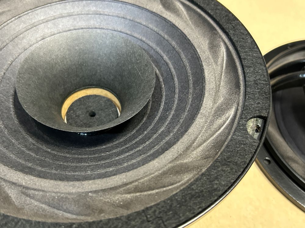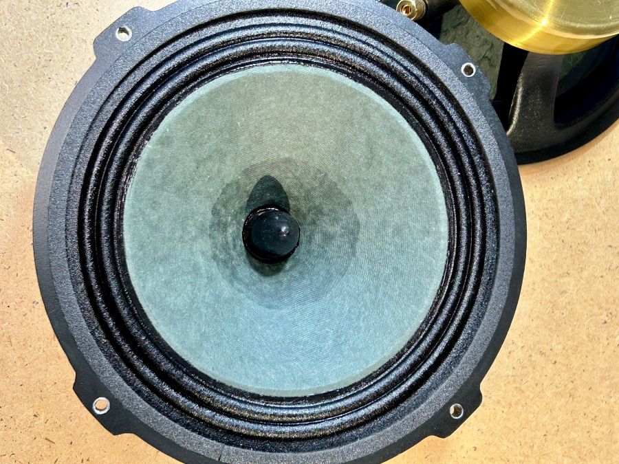 Раньше мы делали диффузоры сами, но всё постепенно меняется и иногда удобнее, если нужно сразу 20-30 пар и более, заказать у хорошо зарекомендовавшего себя производителя. Но я указываю состав и способы изготовления, температурные режимы осаждения целлюлозы и пр... В результате очень высокая повторяемость, да и, честно говоря, дешевле выходит . На фото как раз такие диффузоры на 8" ШП. Подвесы я сам делал...