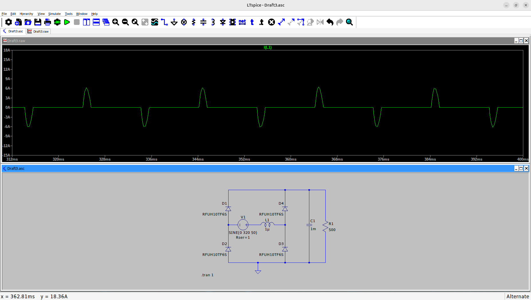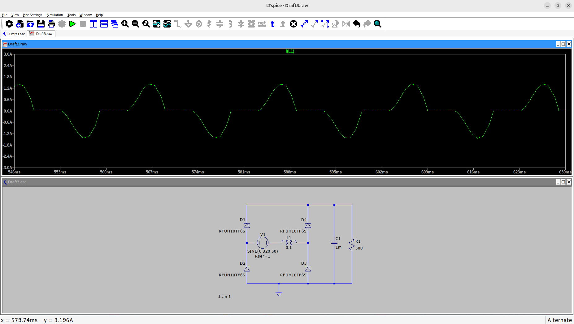 Данная идея пришла мне в голову совершенно спонтанно, когда увидел на одном форуме обсуждение таких динозавров, как пассивные корректоры коэффициента мощности(ККМ), представляющие из себя обыкновенные дроссели со сравнительно небольшой индуктивностью перед выпрямителем. Собственно, заряд накопительных емкостей создаёт весьма приличные токовые всплески с высоким di/dt, отвратительными гармониками и головной болью в виде фона в усилителе. Одно из решений - применение LC фильтра вместо CLC. Но если посмотреть форму тока в трансформаторе, при использовании LC фильтра, то сильно это не обнадёживает. Особенно, если учесть, как меняется выходное напряжение. Просто рассмотрим, как выглядит форма тока через выпрямитель без дросселя и с дросселем в 0.1 Гн На последней картинке конечно тоже не идеально, но амплитуда тока меньше в 4 раза. Но самое интересное, что фактически, роль этого дросселя может сыграть индуктивность рассеяния силового трансформатора, если его намотать соответствующим образом. Кроме того, эта индуктивность "съест" за милую душу и высокочастотные помехи из сети. В общем, хотелось бы знать, кто что думает по поводу данного решения. Может его уже где-то применяют, а я об этом ничего и не знаю