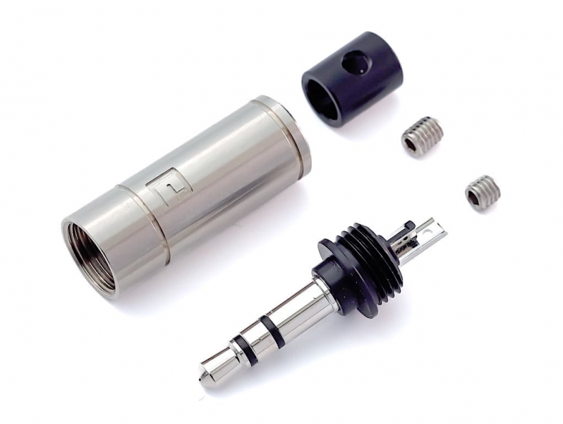 Пришли недавно обновлённые миниджеки компании AECO. Контактная часть разъёма AT3-1351 сделана из целого куска. Это необходимо для снижения потерь при прохождении сигнала через разъём. Центральный контакт изолирован от корпуса разъёма при помощи дерлина. Дерлин обладает прекрасными изоляционными и антивибрационными качествами. Контакты разъёма выполнены из теллуровой меди без никелевой подложки и покрыты в зависимости от модели разными покрытиями. Модель AT3-1351 gold - золотом толщиной в 10 микрон. Модель AT3-1351 silver - серебром толщиной в 120 микрон. Модель AT3-1351 rhodium - родием. Для лучшей фиксации кабеля есть дерлиновая втулка под кабель диаметром 4,5 мм. Если вы хотите закрепить кабель большего диаметра, то не используйте эту втулку. Входное отверстие для кабеля без втулки диаметром 6,5 мм. Внешний корпус сделан из высококачественной нержавеющей стали марки SUS 304. Он соединяется с дерлиновым изолятором контактной части при помощи резьбы. Втулка из дерлина крепятся торцевым винтом. Припаивать кабель очень легко и удобно благодаря конструкции контактов разъёма, которые размещены под углом 120 градусов по отношению друг у другу. Максимальная толщина жил подключаемых к контактам этого разъёма - 20 AWG.