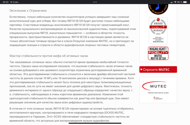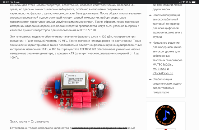 Когда "часы" имеют значение: Mutec, SOtM, Cibershaft и другие 10MГц внешние клоки для улучшения звука