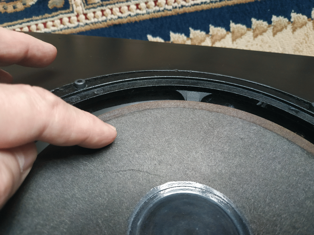 Несквозная трещина в бумажном диффузоре динамика (Audio Note J/Lx)